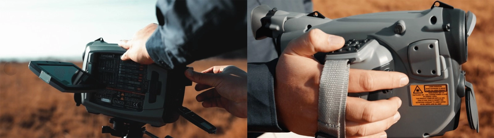 拥有可旋转手柄、可调节角度的取景器以及高清 LCD 屏幕。这种设计允许操作员在各种光照条件下以不同姿势进行巡检,最大限度减少肌肉疲劳并提升作业效率