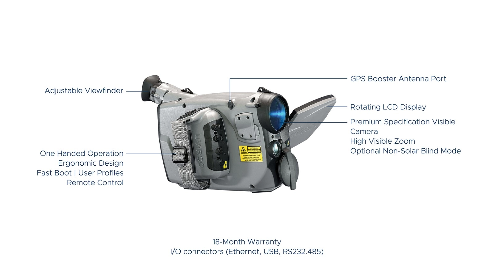 拥有可旋转手柄、可调节角度的取景器以及高清 LCD 屏幕。这种设计允许操作员在各种光照条件下以不同姿势进行巡检,最大限度减少肌肉疲劳并提升作业效率